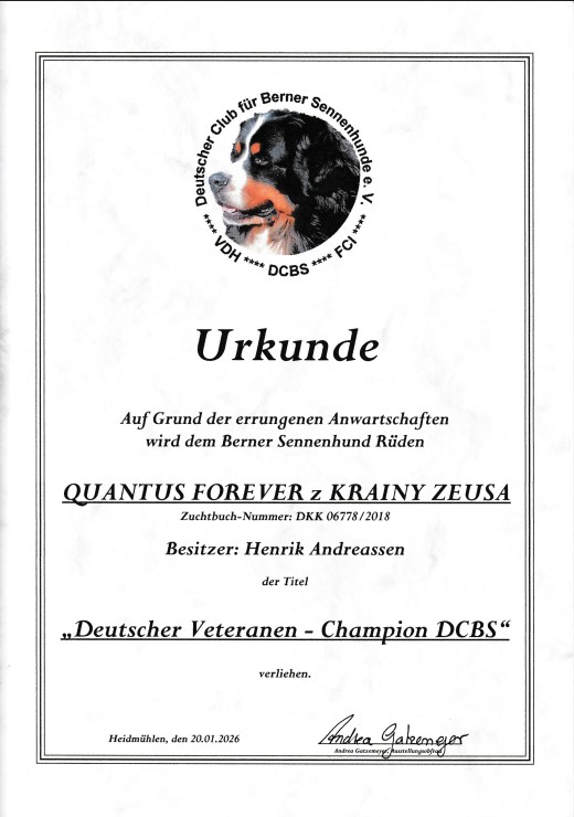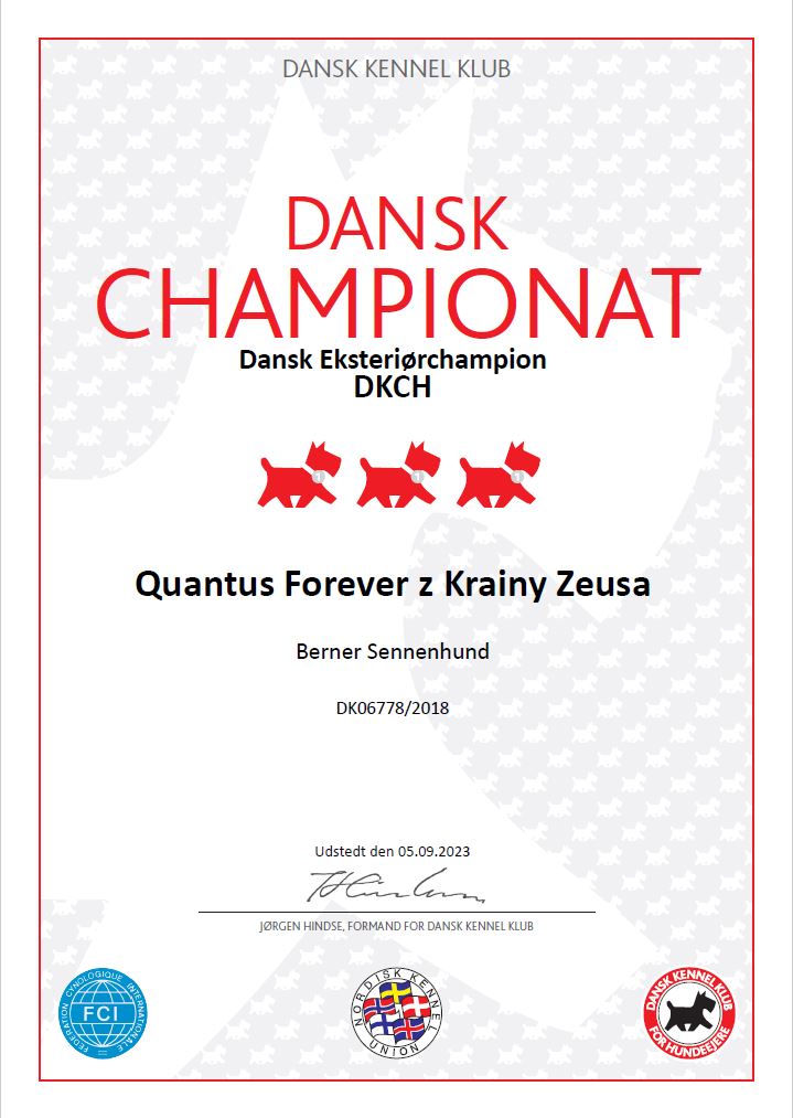 Most winning dogs celebrations in Danish Bernese Mountain Dog Club