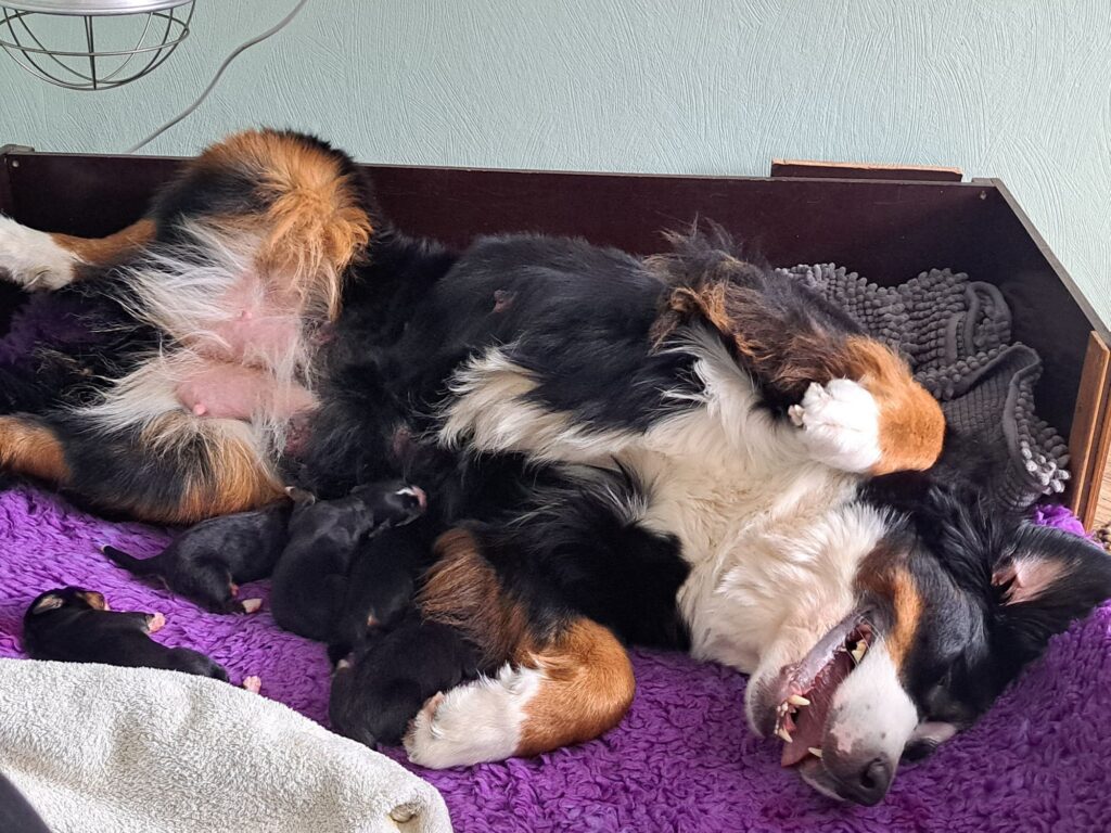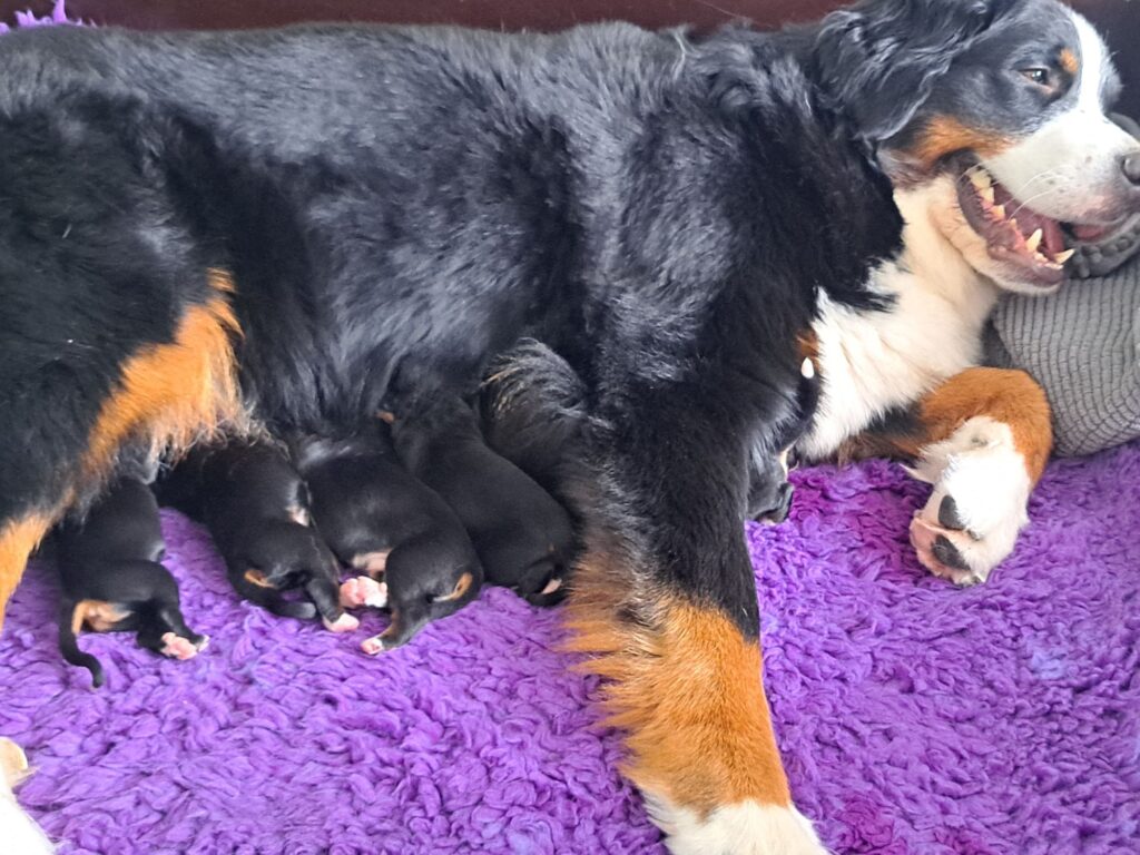 In most cases, the bitch’s abdomen is clearly enlarged, and milk production has begun.